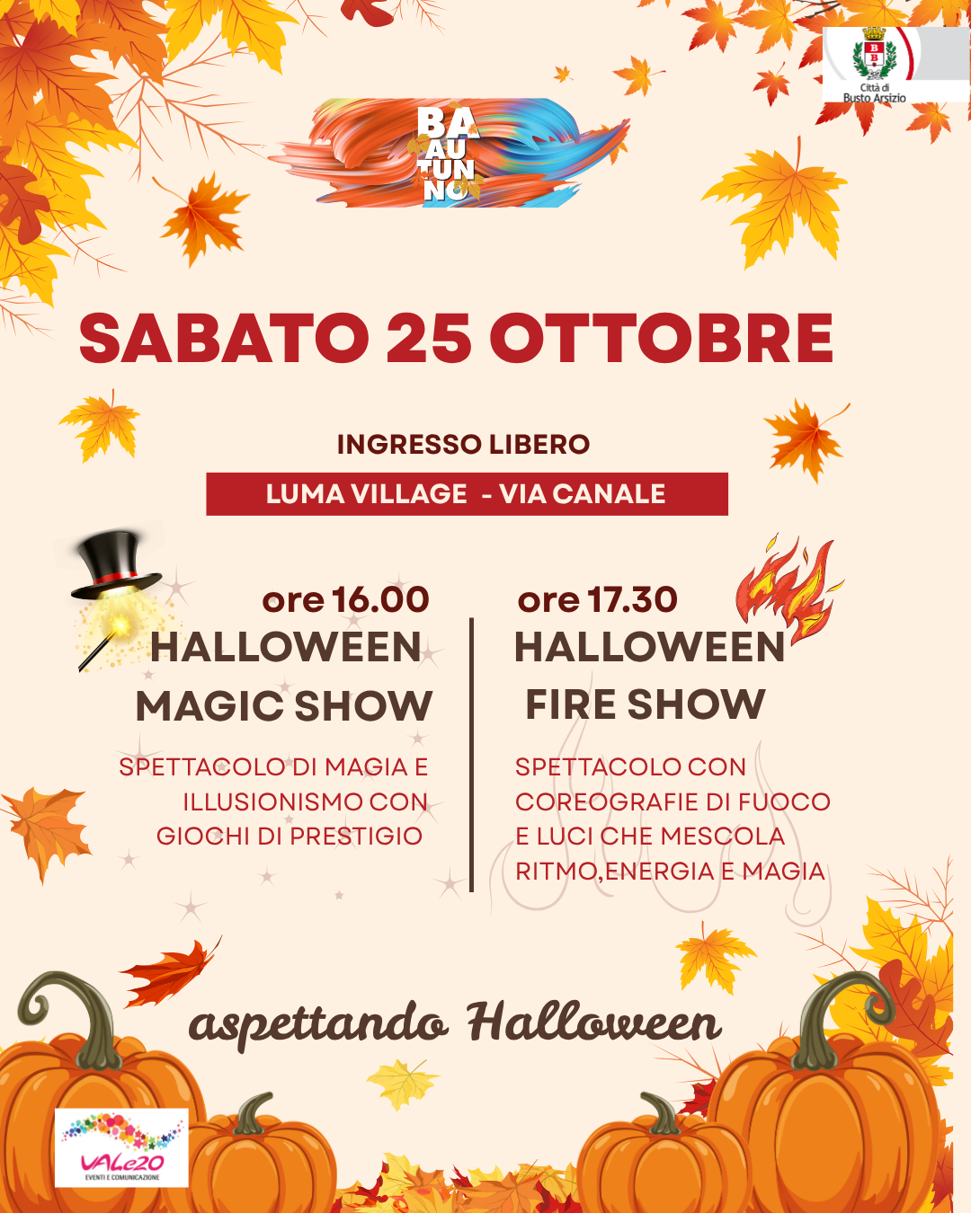 Alle ore 17.30 sarà la volta dell’ HALLOWEEN FIRE SHOW: il pomeriggio si accenderà con fuoco, luci, ritmo ed energia, per uno show ad alto impatto visivo, con coreografie di fuoco e luci che regaleranno un'atmosfera suggestiva.